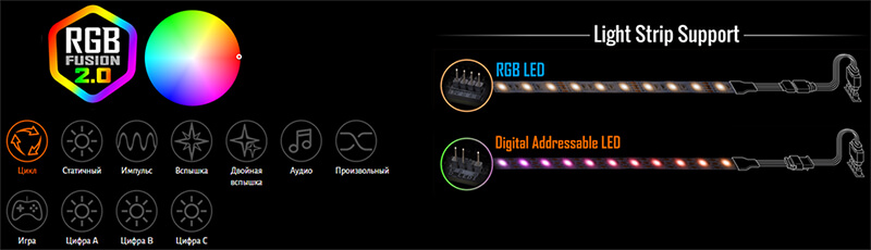 В составе материнских плат B660-серии реализована технология RGB FUSION 2.0, средствами которой можно организовать различные варианты подсветки отдельных зон, изделия в целом, а также синхронизировать настройки с другими компонентами AORUS, что позволяет энтузиастам значительно усилить визуальную составляющую игрового ПК за счет уникальности облика системы.