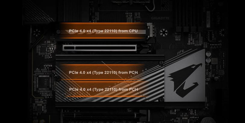 Материнские платы Aorus для игровых ПК готовы предоставить энтузиастам все преимущества актуальных технологий применительно к дисковой подсистеме, с целью максимальным образом задействовать потенциал современных M.2 накопителей.