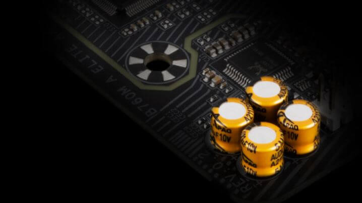 На материнских платах Gigabyte устанавливаются аудиоконденсаторы high-end класса. Такие компоненты позволяют с высокой достоверностью воспроизводить генерируемый сигнал, обеспечивая великолепное звучание и реалистичные спецэффекты в играх.