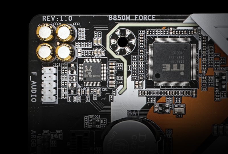 Экранирование звукового тракта, встроенное в печатную плату, защищает аналоговые компоненты аудиоподсистемы от возможных звуковых помех.