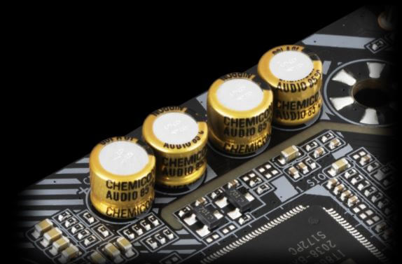 На материнских платах Gigabyte устанавливаются аудиоконденсаторы high-end класса. Такие компоненты позволяют с высокой достоверностью воспроизводить генерируемый сигнал, обеспечивая великолепное звучание и реалистичные спецэффекты в играх.