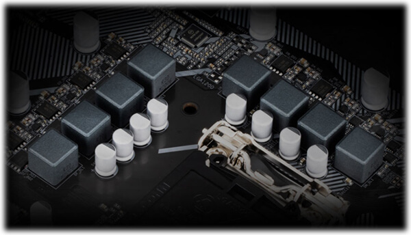 Более чистая и эффективная подача питания на ЦП с улучшенными тепловыми характеристиками обеспечивает стабильность при высоких частотах ЦП и большой нагрузке.