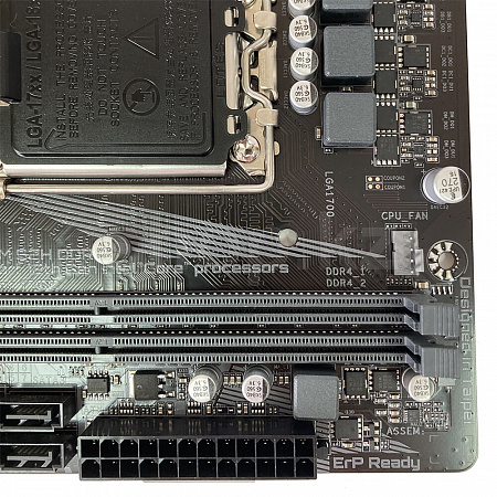 Материнские платы Gigabyte H610-серии оснащены разъемами питания ATX 12 В с твердотельными контактами с целью обеспечить стабильного питание ЦП при любом уровне нагрузки.