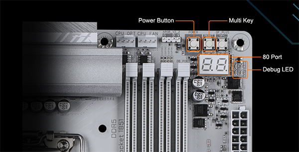 Централизованные светодиодные индикаторы отладки и кнопки управления обеспечивают удобный и организованный процесс устранения неполадок при сборке нового компьютера.