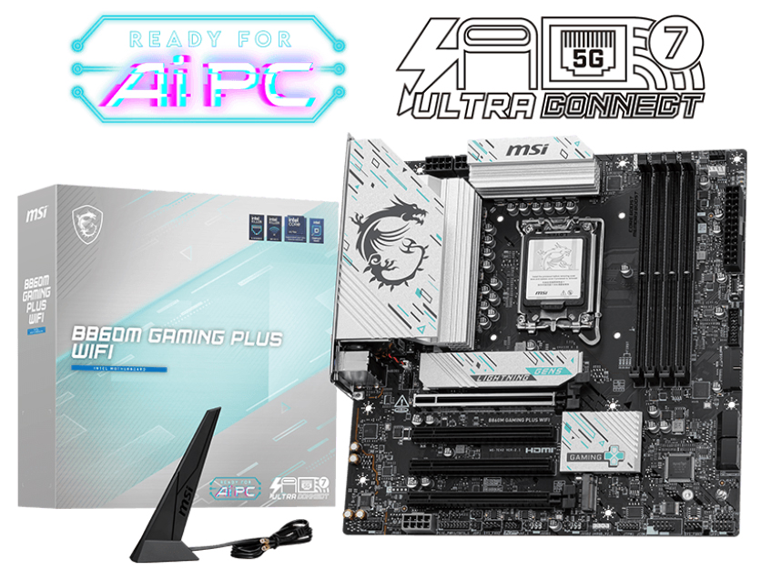 B860M GAMING PLUS WIFI создана для геймеров, которые ценят широкие возможности подключения, универсальность и передовые технологии. С портом Thunderbolt 4, поддержкой Wi-Fi 7, 5G Ethernet, PCIe 5.0, дополнительным питанием PCIe и уникальными функциями EZ DIY эта плата идеально подходит для круглосуточного гейминга с процессорами Intel Core Ultra.