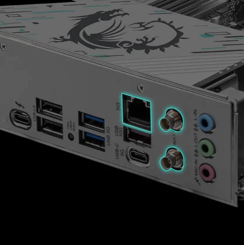 Премиальное сетевое решение от MSI обеспечивает невероятную скорость передачи данных для требовательных пользователей.