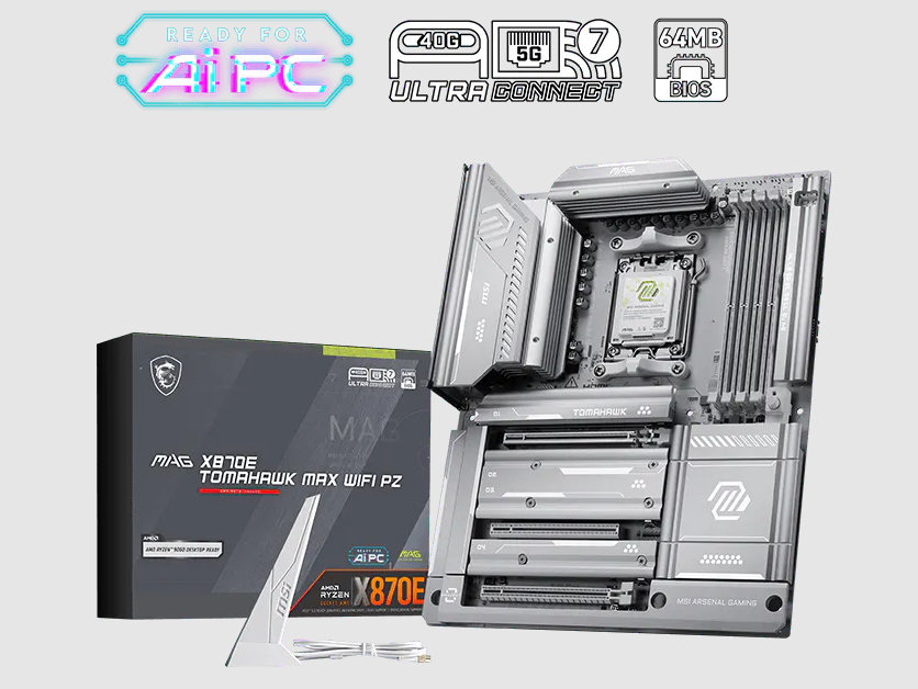 MAG X870E TOMAHAWK MAX WIFI PZ разработана для геймеров и представляет собой стабильную, прочную и удобную для самостоятельной сборки основу для ПК.