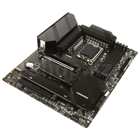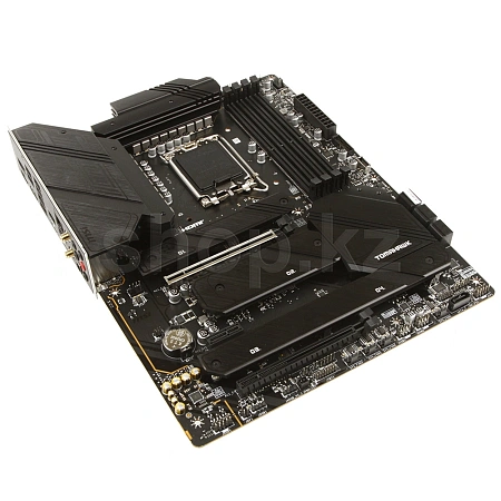 Материнская плата имеет дополнительные точки пайки и усилены стальными элементами, что позволяет использовать массивные видеокарты без риска повреждений.