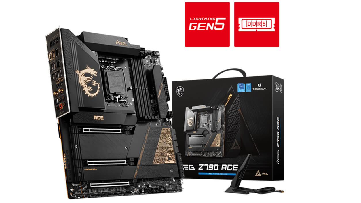 MEG Z790 ACE привлекает взгляд своим великолепным внешним видом с золотыми акцентами на черном фоне. Она представляет собой EATX-модель высочайшего уровня, способную раскрыть весь игровой потенциал новейших процессоров Intel Core 14-го и 13-го поколения, оперативной памяти и видеокарт – в том числе в режиме разгона.