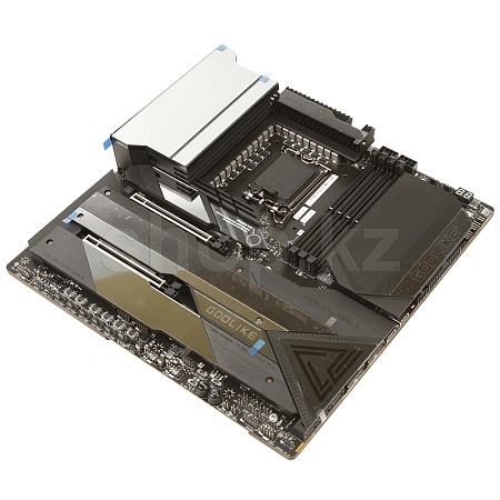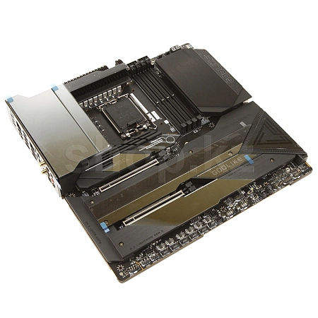 MEG Z790 Godlike предлагает пользователю испытать все возможности процессора 14-го и 13-го поколения Intel Core. В ее внешнем виде выделяется большой черный радиатор с резным узором и золотистой подсветкой. Изюминкой модели является приборная панель M-Vision, которая служит для мониторинга и управления параметрами компьютера.