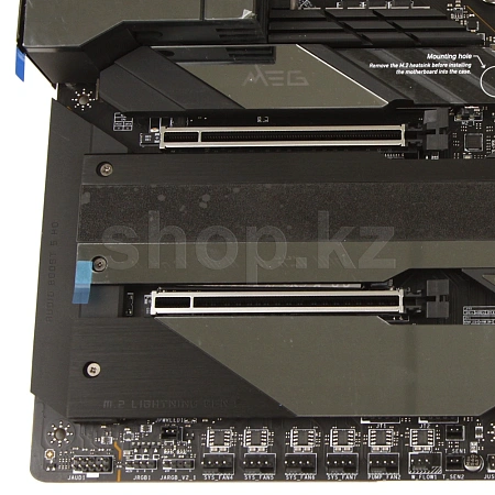 Двухсторонняя система охлаждения Shield Frozr для твердотельных накопителей в слотах M.2 предотвращает падение производительности, которое может случиться из-за перегрева.