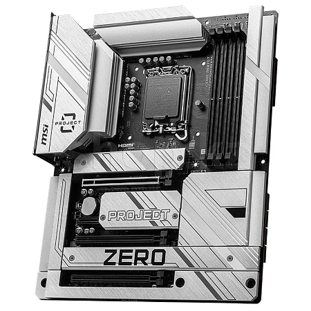 Z790 PROJECT ZERO перемещает разъемы питания, разъемы вентиляторов и другие штыревые разъемы на заднюю часть материнской платы. Это обеспечивает более чистый и аккуратный вид спереди, позволяя полностью продемонстрировать эстетичный дизайн материнской платы, жидкостного охладителя и видеокарты.