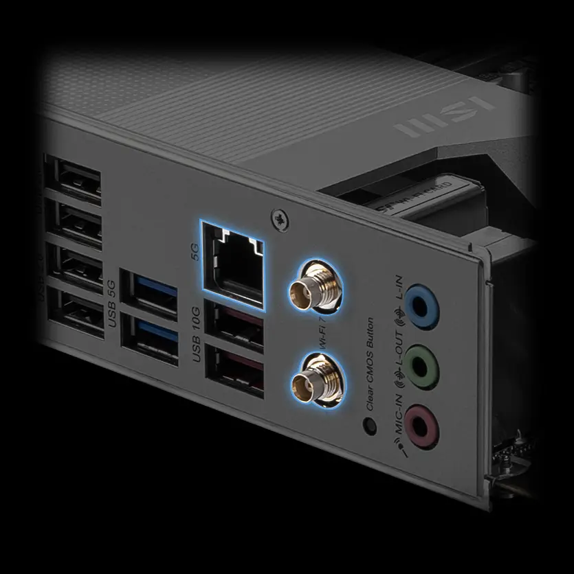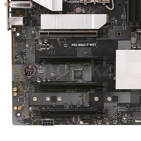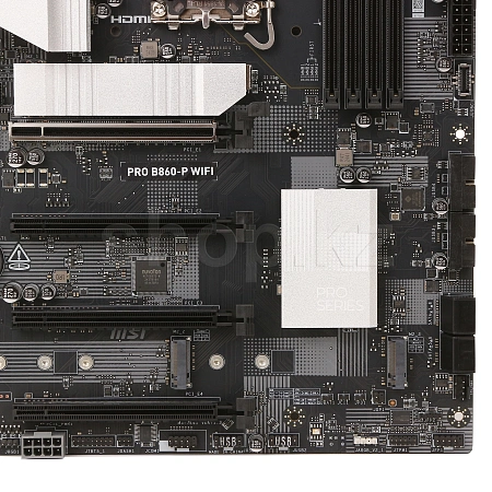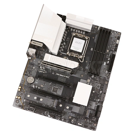 PRO B860-P WIFI имеет простой и стильный дизайн с серебристым оттенком, который отлично смотрится как с белыми, так и с черными ПК. В ней есть эксклюзивные технологии MSI, такие как Wi-Fi 7 с EZ-антенной, 5G LAN, Thunderbolt 4, PCIe 5.0 M.2 и дополнительное питание PCIe. Она идеально подходит для процессоров Intel Core Ultra.