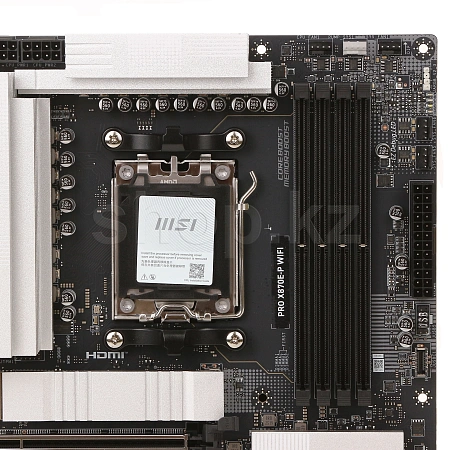 PRO X870E-P WIFI отличается лаконичным дизайном и гармоничной серебристой цветовой гаммой, которая идеально сочетается как с белыми, так и с чёрными ПК. Плата оснащена множеством эксклюзивных функций MSI: полноценным Wi-Fi 7 с антенной EZ, 5G LAN, PCIe 5.0 M.2 с EZ M.2 Shield Frozr II и дополнительным модулем питания PCIe Power, совместимым с процессорами AMD Ryzen серии 9000.