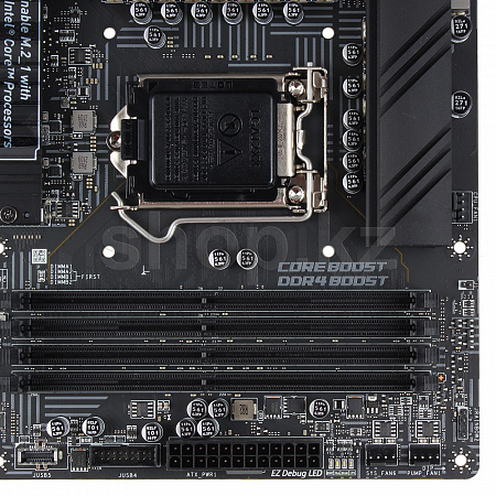 Система охлаждения M.2 Shield Frozr Наиболее скоростные SSD могут снижать свою производительность под высокими нагрузками, чтобы избежать перегрева, поэтому им не помешает дополнительное охлаждение. На данной материнской плате оно реализовано в виде радиатора M.2 Shield Frozr.