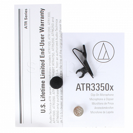 ATR3350x поставляется в комплекте с клипсой для крепления на одежду, батарейкой LR44, поролоновой ветрозащитой.