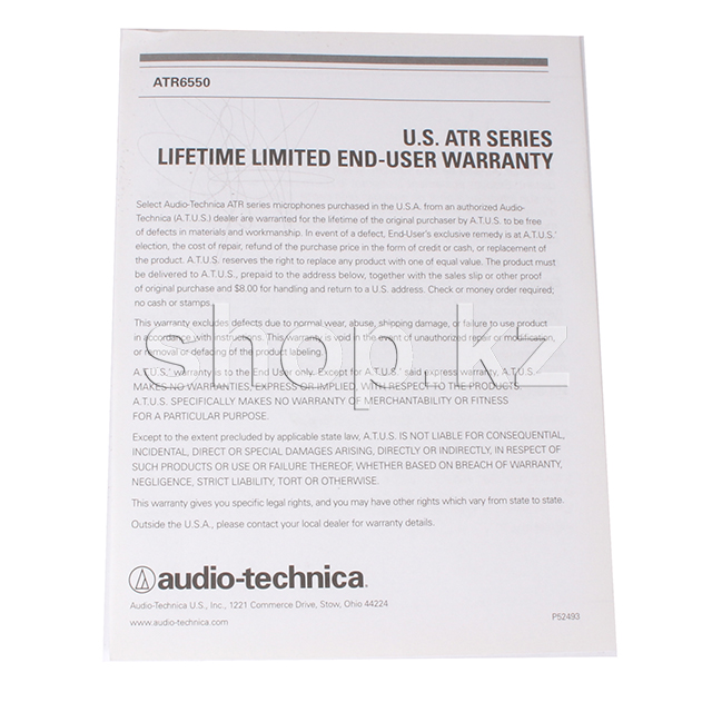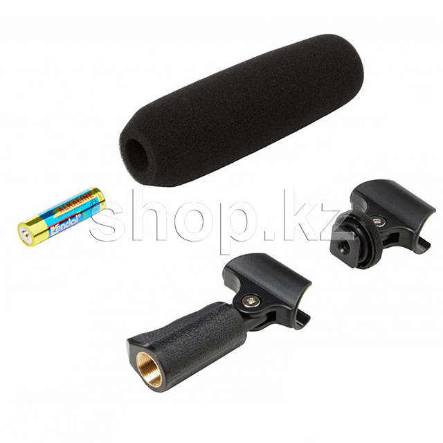 Audio-Technica ATR6550 - конденсаторный микрофон-пушка, специально предназначенный для использования с видеокамерами. Устройство имеет два режима работы - на малой/средней дистанции и на большом расстоянии. В комплект входит кабель (0.9 м) без возможности отсоединения, держатель, креплением для камеры, ветрозащита, батарейка, адаптер для подключения.