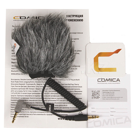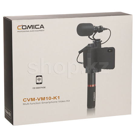 Comica CVM-VM10-K1 - накамерный микрофон для использования со смартфонами. В комплекте предусмотрен держатель для смартфона, ветрозащита и держатель-монопод.