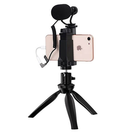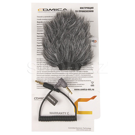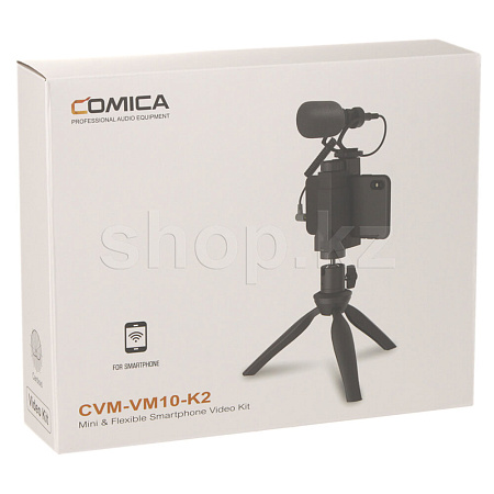 Comica CVM-VM10-K2 - накамерный микрофон для использования со смартфонами. В комплекте предусмотрен держатель для смартфона, ветрозащита и штатив (кабель-переходник Jack 3.5mm - Lightning в комплект не входит).