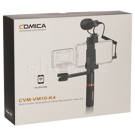 Comica CVM-VM10-K4 - накамерный микрофон для использования со смартфонами. В комплекте предусмотрен держатель для смартфона, ветрозащита, держатель-монопод и держатель с креплением холодный башмак.