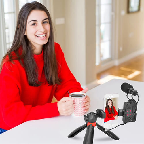 Comica CVM-VM10-K5 - накамерный микрофон для использования со смартфонами. В комплекте предусмотрен держатель для смартфона, ветрозащита, штатив, держатель с креплением холодный башмак и LED-лампа.