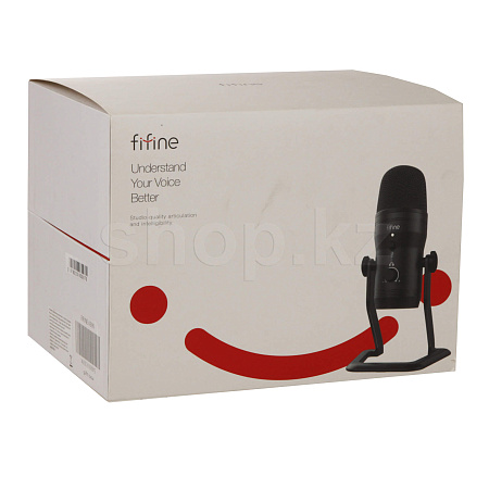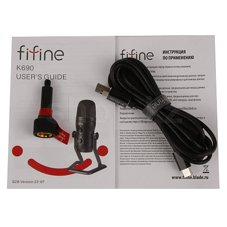 Корпус Fifine K690 изготовлен из металла и отличается высокой надежностью, а также лаконичным дизайном. Данная модель может размещаться на столе при помощи комплектной стойки. Подключение производится при помощи съемного USB-кабеля.