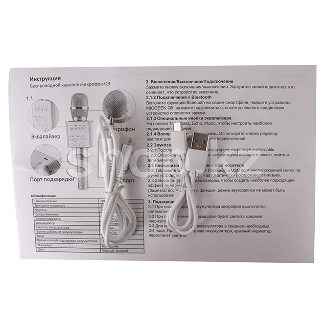 Портативный караоке микрофон - это новая, ставшая популярной модель функциональной колонки и беспроводного микрофона в одном корпусе. Модель имеет microUSB и USB разъёмы, позволяющие подключить внешний накопитель с песнями, и управлять ими прямо с панели микрофона. Беспроводной микрофон оснащен встроенной панелью, позволяющей переключать, останавливать, воспроизводить, настраивать эквалайзер и громкость музыки или голоса.