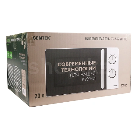 Мощность микроволн в максимальном режиме составляет 700 Вт. Прибор Centek CT-1552 оснащен простым поворотным механизмом для управлению шестью уровнями мощности и 30-минутным таймером без наличия автоматических программ.