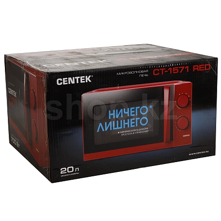 Микроволновая печь Centek CT-1571 с красным корпусом оснащена камерой на 20 л с эмалированными внутренними стенками. Такая поверхность легко очищается даже от засохших частичек пищи и их запаха, если предварительно вскипятить воду с лимонной кислотой.