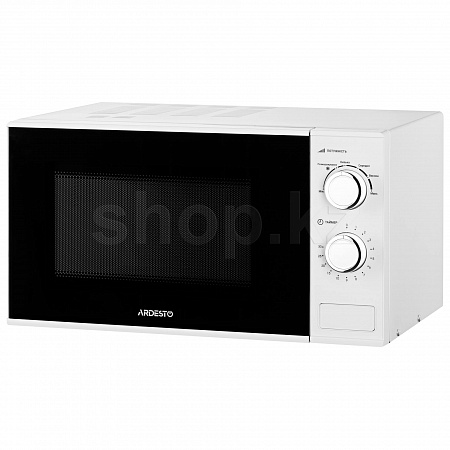 Микроволновая печь белого цвета с механическим управлением. Мощность GO-M923W – 900 Вт, есть шесть уровней регулировки, а внутренний объем равен 23 л.