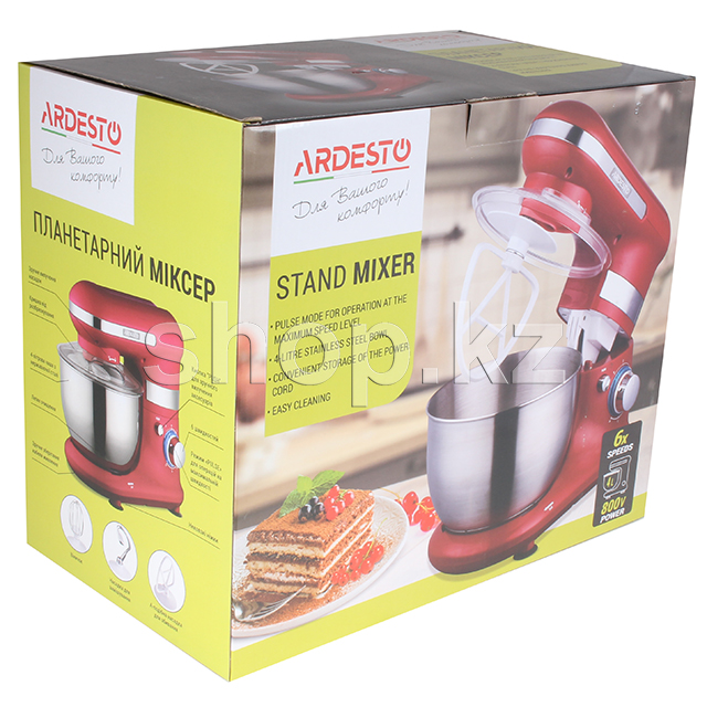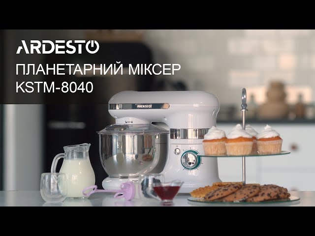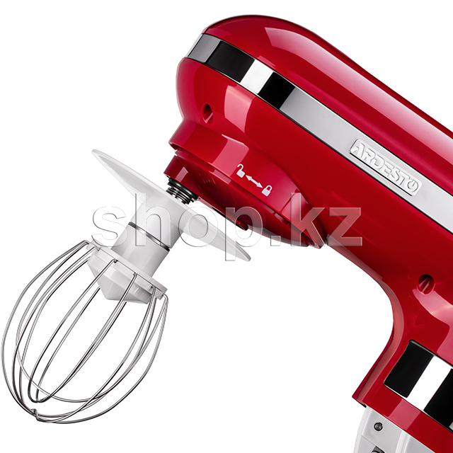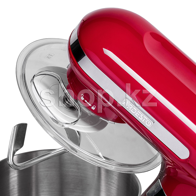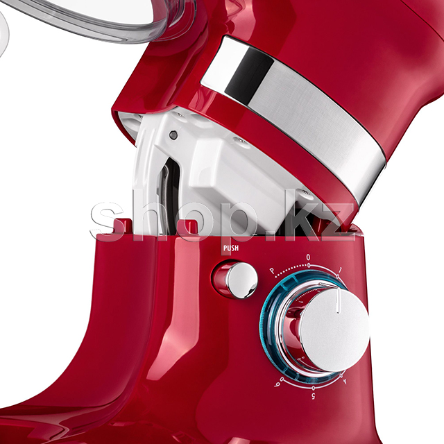 Миксер выполнен в эргономичном корпусе из прочного пластика и дополнен хромированными элементами. Чаша на четыре литра изготовлена из нержавеющей стали, а насадки — как из пластика, так и из металла. Венчик и А-образная насадка предназначены для взбивания крема и других ингредиентов с жидкой консистенцией, а крючок для замеса теста.