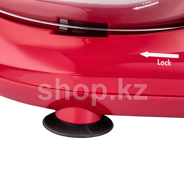 Прозрачная съемная крышка защищает от брызг, а для извлечения насадок есть специальная клавиша. Двигатель мощностью 800 Вт защищен от перегрева, предусмотрено шесть режимов скорости, а также режим Pulse. Для управления используется удобный рычаг, а для устойчивой установки есть ножки-присоски.