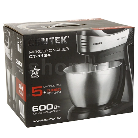 Миксер Centek CT-1124 со стальной отделкой корпуса относится к стационарному типу, что обеспечивает возможность длительного взбивания различных продуктов для получения идеального крема, теста или пюре.