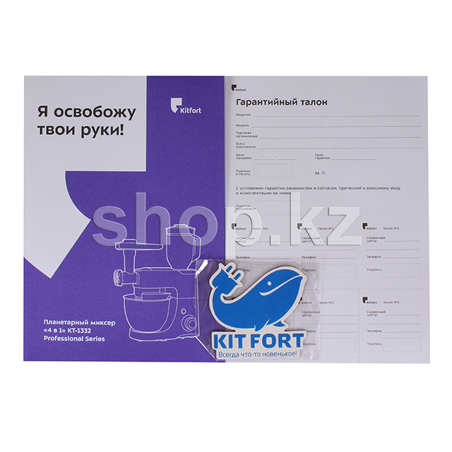 Kitfort КТ-1332-2 поможет Вам смешать ингредиенты, взбить яичный белок или сливки, приготовить картофельное пюре, соус, крем, мусс, замесить жидкое тесто для блинов и крутое для пельменей и пирогов, перемолоть мясо на фарш, нашинковать овощи и фрукты и смешать ледяной коктейль или смузи. В комплекте миксера имеется блендер, комбайн и мясорубка, что превращает эту модель в универсальную кухонную машину «4 в 1».