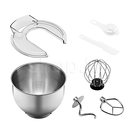 Чаша ёмкостью 5 л изготовлена из нержавеющей стали, она прочная и в ней можно смешивать даже горячие ингредиенты. Она укомплектована защитной крышкой с загрузочным отверстием, через которое можно добавлять ингредиенты прямо во время работы.