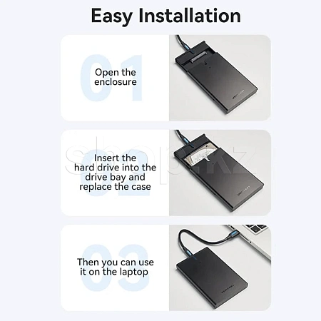 2.5 дюймдік SATA қатты дискілері үшін арнайы жасалған Vention USB 3.1 бір ұяшықты корпусымен деректер сапасын арттырыңыз. Озық технологиялармен жабдықталған бұл корпус бұрын-соңды болмаған жылдамдықты, жақсартылған өнімділікті және максималды қорғауды қамтамасыз етеді.