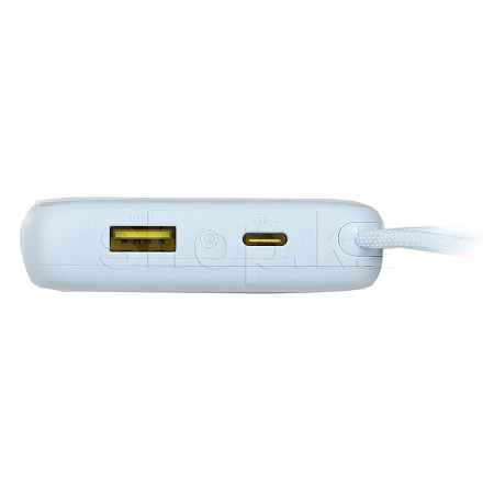 Компактный внешний аккумулятор ёмкостью 10000 mAh с поддержкой быстрой зарядки до 22.5 W. Оснащён двумя встроенными кабелями USB-C и Lightning, а также портами USB-A и USB-C, что позволяет заряжать до 4 устройств одновременно.
