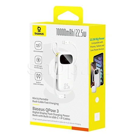 22.5 W дейін жылдам зарядталатын және сандық дисплейі бар 10000 mAh қуат банкі. Смартфондар, планшеттер және басқа USB зарядтау құрылғылары үшін қолайлы.