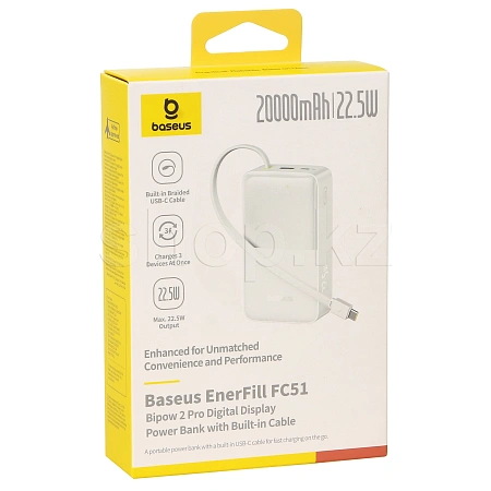 Компактный внешний аккумулятор Baseus EnerFill FC51 Bipow 2 Pro Digital Display с реальной номинальной ёмкостью 20000 mAh и поддержкой быстрой зарядки до 22.5 W.