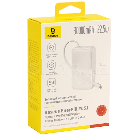 Компактный внешний аккумулятор Baseus EnerFill FC51 Bipow 2 Pro Digital Display с реальной номинальной ёмкостью 30000 mAh и поддержкой быстрой зарядки до 22.5 W.
