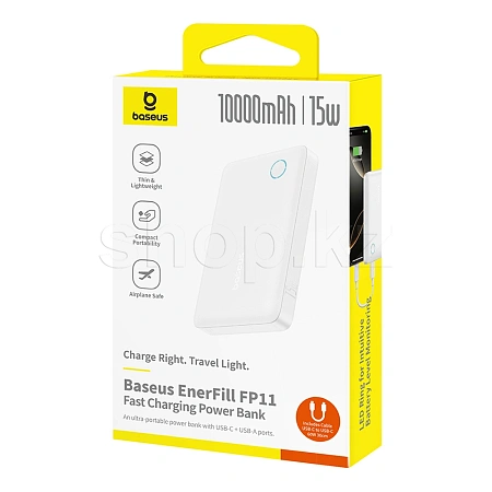 Компактный внешний аккумулятор ёмкостью 10000 mAh с поддержкой зарядки до 15 W. Оснащён портами USB-C и USB-A, позволяет заряжать два устройства одновременно. Лёгкий и тонкий корпус делает его удобным для повседневного использования и поездок.