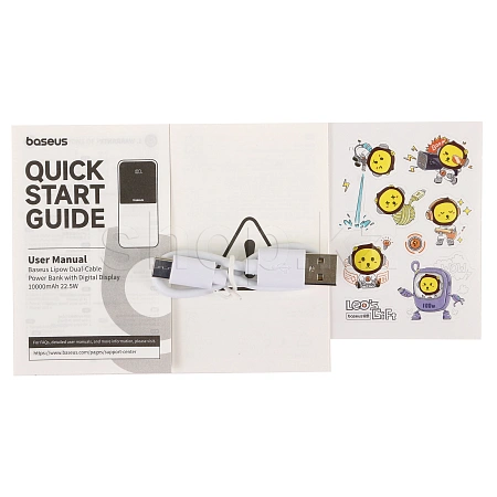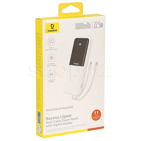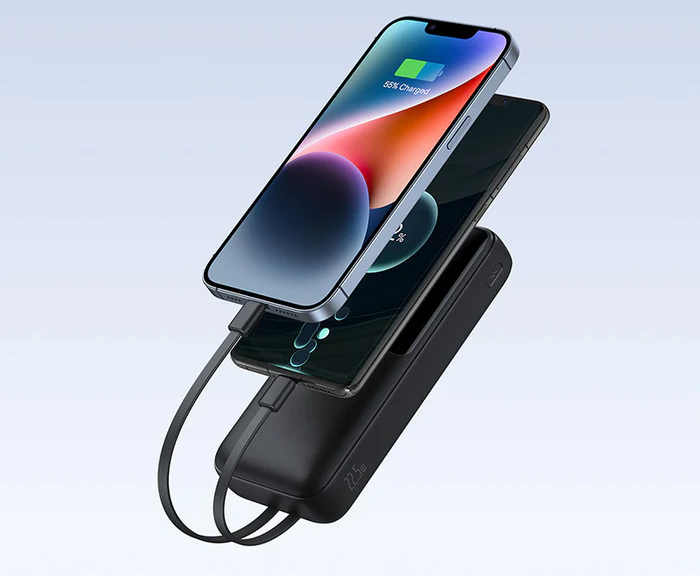 Внешний аккумулятор ёмкостью 10000 mAh с поддержкой быстрой зарядки до 22.5 W. Оснащён двумя встроенными кабелями (USB-C и Lightning), цифровым дисплеем уровня заряда и поддерживает одновременную зарядку нескольких устройств без использования дополнительных проводов.