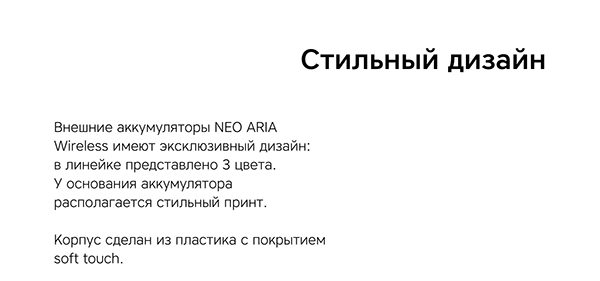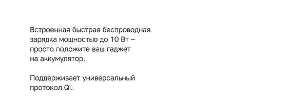 Фактура корпуса soft-touch - Особенности:Беспроводная зарядка Qi, Индикатор заряда, Поддержка быстрого заряда