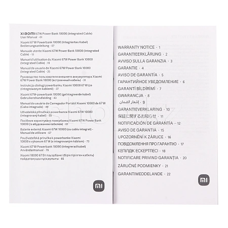 Xiaomi PB1067 оснащен зарядным кабелем Type-C, портом Type-C и портом USB-A. Порт питания USB-C со встроенным кабелем, а также порты USB-C и USB-A позволяют заряжать три устройства одновременно
