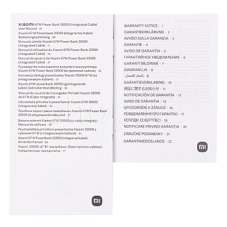 Xiaomi PB2067, 20000 mAh, Tan ұялы батареясы