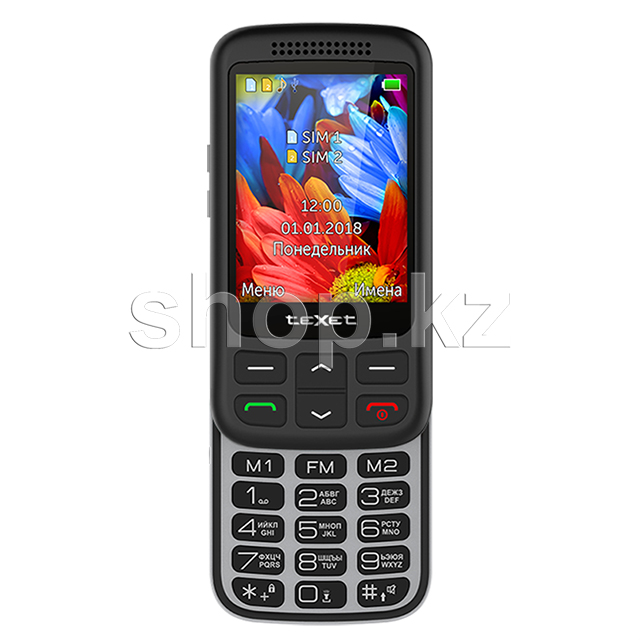 Телефон ТМ -501 выполнен в форм-факторе слайдер с выдвижной клавиатурой и объединяет в себе красивый дизайн, небольшой размер в сложенном состоянии и полноценную панель с крупными кнопками номеронабирателя. Благодаря такому исполнению телефон в сложенном состоянии довольно компактный (109х56x16 мм), но при этом размер корпуса и клавиатуры оптимален для удобства пользования. Корпус выполнен пластика с soft-touch покрытием. Поверхность матовая, нескользкая, бархатистая, за счет чего его приятно держать в руке.