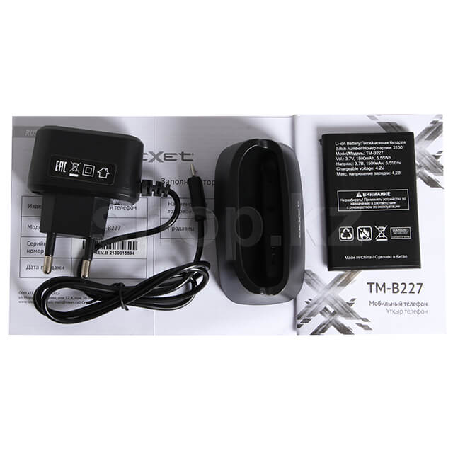 TM-B227 моделінің айырмашылығы-ол стандартты зарядтағышпен ғана емес, сонымен қатар арнайы қондыру станциясымен де жабдықталған. Бұл көру қабілеті нашар адамдарға телефонды пайдалануды айтарлықтай жеңілдетеді, олар көзілдіріксіз телефонға қуат көзінің қосқышын салу оңай емес. TM-B227 моделіндегі батареяны зарядтау телефонды стендке орнатқан кезде жүзеге асырылады.