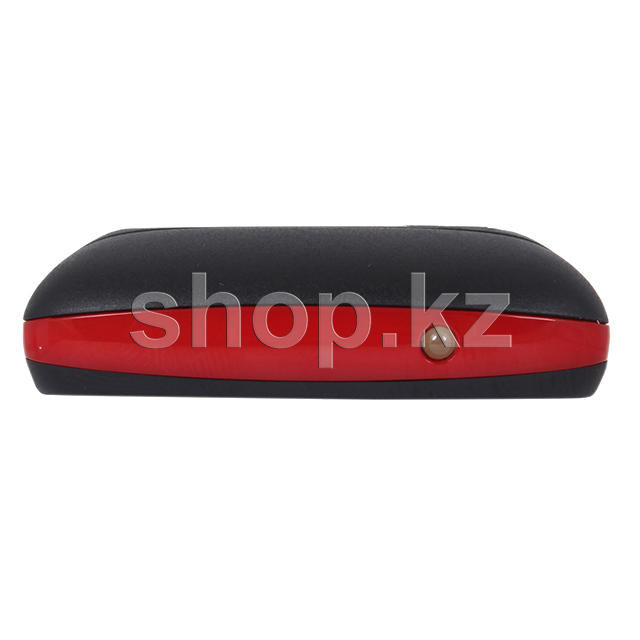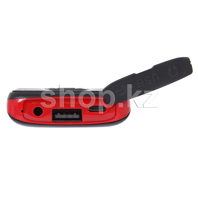 Несмотря на мощную батарею телефон выглядит стильно и аккуратно. Его толщина около 14мм, а вес всего 97г. Такой телефон не займет много места и может быть использован в качестве дополнительного к смартфону. Черный пластиковый корпус по периметру имеет глянцевую алую отделку, на блоке клавиатуры центральная навигационная кнопка выполнена в серебристом цвете. В целом дизайн модели выглядит стильным и привлекательным.