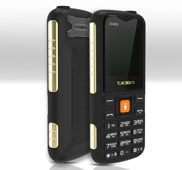 Мобильный телефон кнопочный TM-D400 имеет компактные размеры, а корпус обладает классом защиты IP54 и укреплён алюминиевыми рёбрами по бокам. Устройство оснащено ЖК-экраном 1.77 дюйма и аккумулятором на 1500 мАч, что позволяет быть на связи до 6-7 часов. TM-D400 выпускается в двух цветовых решениях - черный и зелёный.