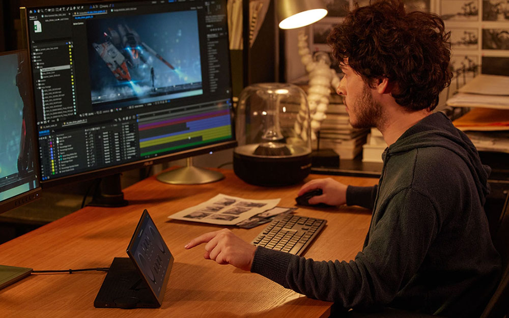 ASUS Dial предназначен для работы с совместимым программным обеспечением Adobe, таким как Photoshop, Photoshop Lightroom Classic, Premiere Pro и After Effects. Настраиваемые сочетания клавиш позволяют увеличивать и уменьшать изображения или регулировать размер кисти, просто поворачивая ASUS Dial. Вы даже можете настроить интерфейс по умолчанию в соответствии со своим стилем работы.
